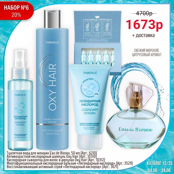 Всем, кто зарегистрируется в Faberlic с 13 апреля по 3 мая 2026 года и совершит покупку в периоде №6/2026, дарим набор Oxy Hair при заказе по следующему каталогу с 4 по 24 мая 2026 года.